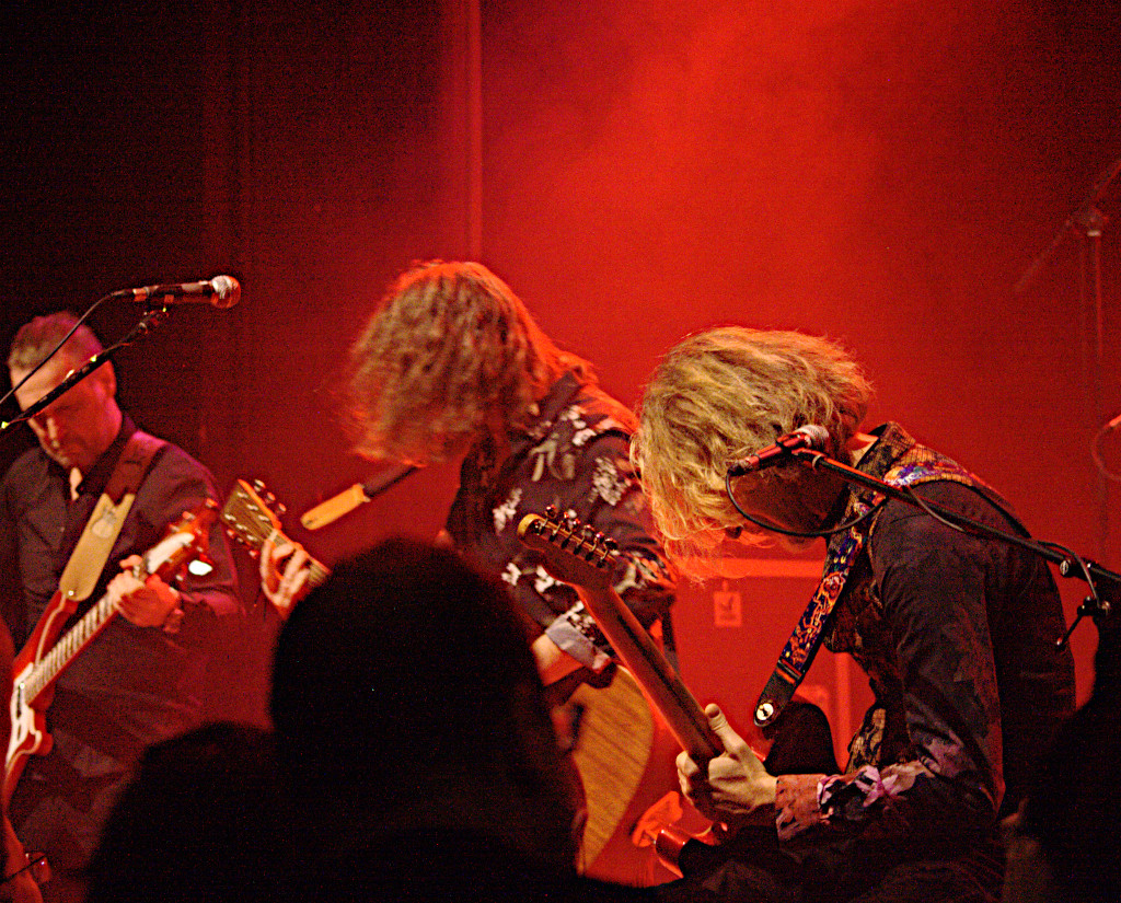 Nach einer kurzen Pause betraten dann The Flower Kings die Bühne. Roine Stolt teilte sich sowohl Gitarre und Gesang mit Hasse Fröberg, die Bassgitarre bediente der wohlbekannte Jonas Reingold, die Keyboards bediente Zach Kamins und am Schlagzeug saß Mirkko DeMaio. Schon mit dem ersten Titel „House of Cards“ vom aktuellen „Waiting for Miracles“ Album zeigte die Band, dass sie ihren jazzigen Retro Prog immer noch drauf haben und sie auch auf ihrem aktuellen Longplayer ihr bewährtes Erfolgsrezept gekonnt beherrschen. Den markant, spröden Gesang von Roine Stolt hätte ich gerne häufiger gehört, Hasse Fröberg hat seinen Job natürlich auch sehr gut gemacht, genau wie alle seine Mitstreiter. Jonas Reingold überzeugte durch seinen bekannt groovenden Rickenbacker Sound, und Zach Kamins durch die passende Unterstreichung des dargebotenen Retro Progs. Mein persönlicher Liebling von The Flower Kings wurde auch gespielt, das tolle „Stardust We Are“ von dem grandiosen gleichnamigen Album. Wie zu erwarten, war die Setlist eher kurz, dafür mit vielen Longtracks. Die erste Zugabe, nachdem Roine Stolt in einer seiner gewohnt launigen Ansagen verkündete, wie groß seine Abneigung gegen die Prozedur des Verlassens der Bühne nach dem Hauptset und das Wiedererscheinen ist, war ein Medley aus Last Minute on Earth von dem „The Rainmaker“ Album sowie „What If God Is Alone“ von „Paradox Hotel„. Die zweite Zugabe an dem Abend war ein Beatles Cover „The Long and Winding Road„, das von allen Bandmitgliedern inklusive der beiden Vorbands dargebracht wurde und einen schönen Abschluss des Abends darstellte. Mir hat der Abend sehr gefallen, alle Musiker waren exzellent gelaunt und haben überzeugt. Das Venue war, wie schon gesagt, absolut passend für jeden der Künstler, und am sehr gut ausgestatteten Merch-Stand konnte der geneigte Fan eventuelle Lücken im heimischen CD- und Vinylregal und Kleiderschrank adäquat auffüllen.